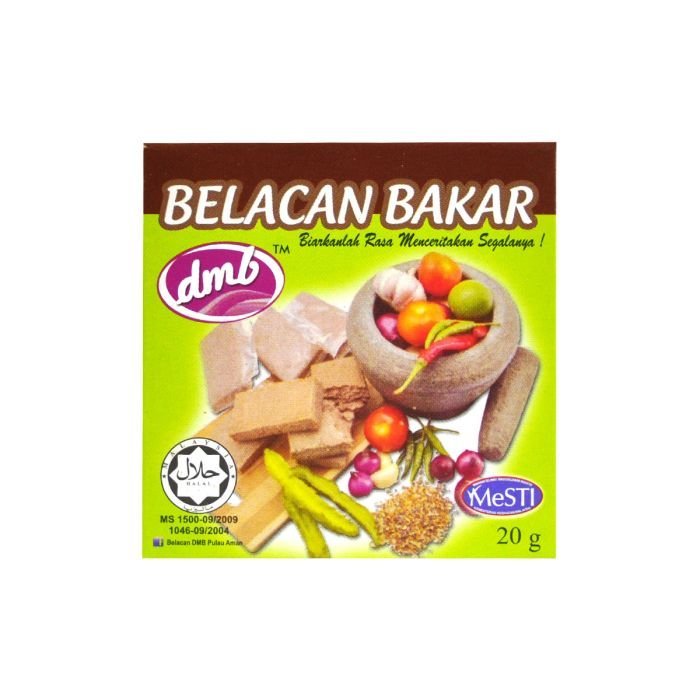 Roasted shrimp paste (belacan) with an intense, savory aroma, essential for making sambal, curries, and traditional Malay dishes. Strong, pungent flavor.